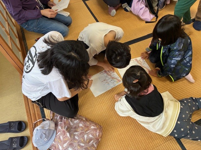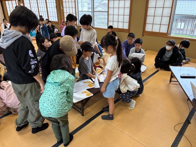 10月19日の朝、5月に植えたさつま芋ほりをしました。第1小学校に通う周枳区のこどもたちが集まりました。その前に、公民館の2階の和室で、防災教室を行いました。これは新しい取り組みで、公民館館長が防災士の資格を持っていて、文化祭でも防災について考えようとの取り組みです。集まった親子で、ハザードマップを見たり、講和やビデオで学習したりしました。